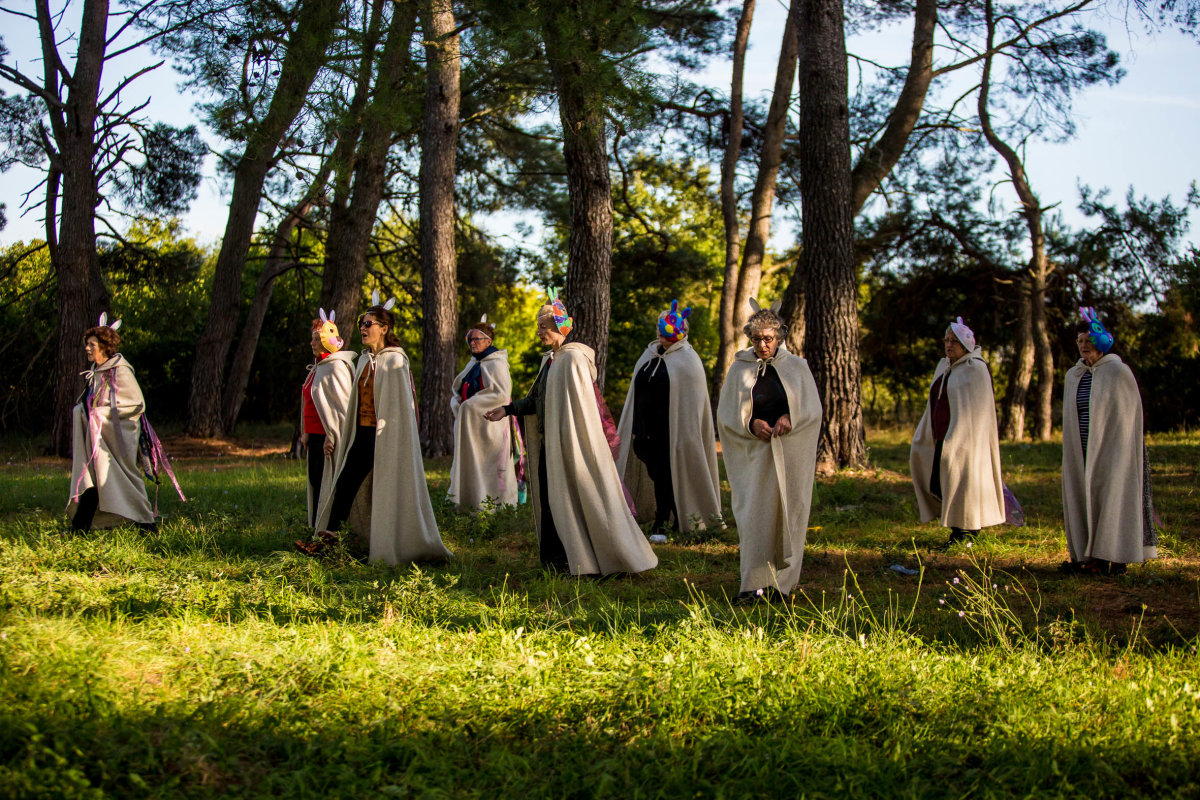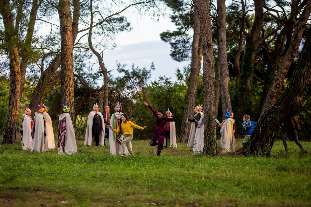 Život čini niz proživljenih trenutaka, što onih unutarnjih u svom biću, što onih koje podijelimo sa drugima, a uspomene se samo slažu kao uspavani divovi, samo da bi nas nosili i inspirirali. Vrijeme u kojem živimo ubacilo je u igru puno digitalnih surogata čovjeka, no teško da išta može zamijeniti pravi ljudski moment, kontakt, stvaranje, dapače, često virtualno ometa ono stvarno. ‘Ono mjesto koje nastaje’ pokazalo je koliko je to istina. Koliko značajnih i iskrenih reminiscencija i poziva na uspomene, prisutnih proživljenih trenutaka te snova o budućnosti mogu izmijeniti generacijski, porijeklom vokacijski različiti i ‘tek upoznati’ ljudi, u samo 14 dana. Koji vođeni da komuniciraju univerzalnim jezikom umjetnosti, kroz pokret i glazbu otvaraju vrata predivnoj svakodnevici i komunikaciji; od ćakulanja na ritualnoj kavici, do pjevalačkih sijela u crkvi, plesnih igara u šumi, ispreplitanja u Mediteranskom plesnom centru, finale izvedbe.